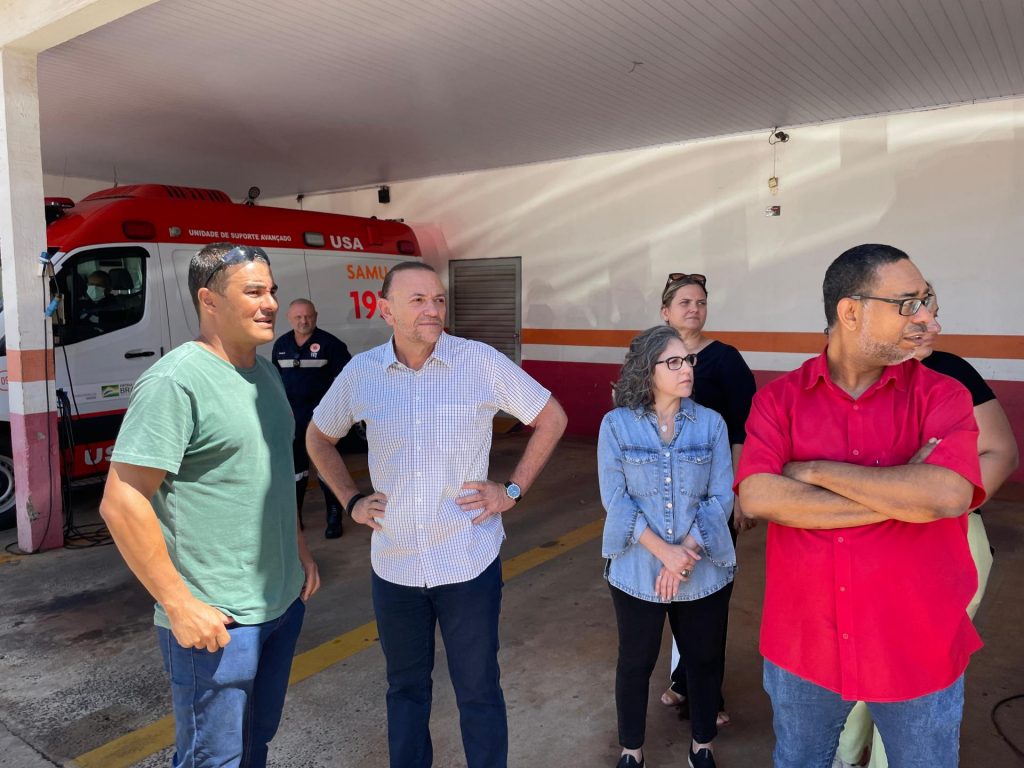 O prefeito Edinho estava acompanhado da secretária municipal de Saúde, Juliana Lujan; de Luciana Rodrigues e Edivaldo Trindade, da secretaria de Saúde, e de Alessandra Somenzari e Francisco Assunção, da equipe do SAMU Regional.