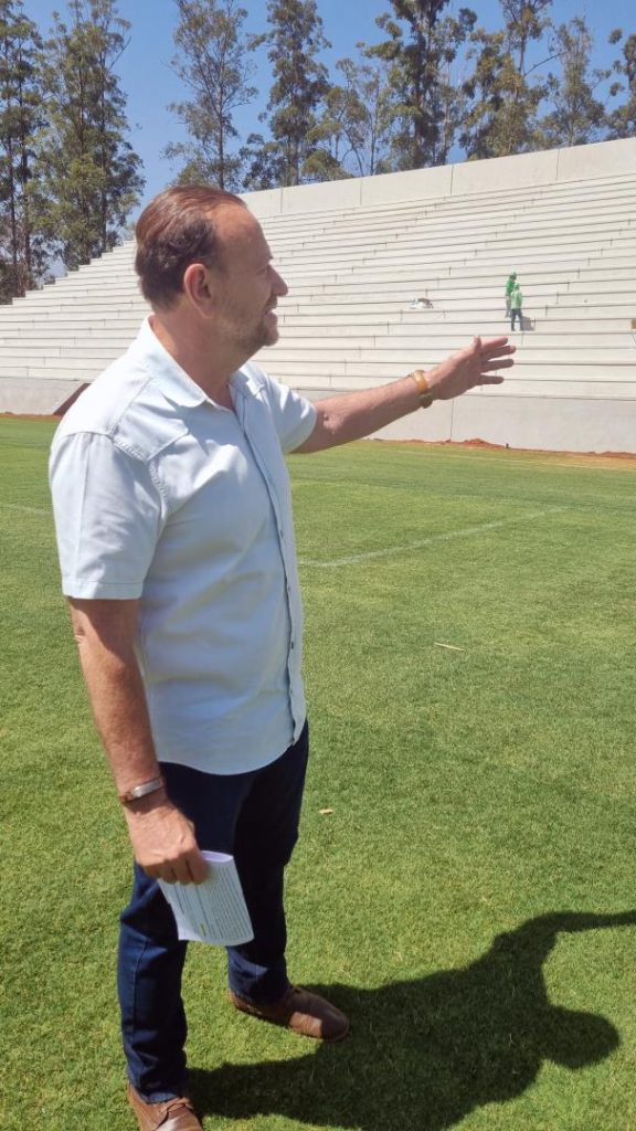 O prefeito Edinho esteve na manhã desta quinta-feira (12) acompanhando as obras de reforma e adequação do Estádio Municipal Dr. Cândido de Barros, o Estádio do Jardim Botânico, que chegaram na fase de instalação das arquibancadas.