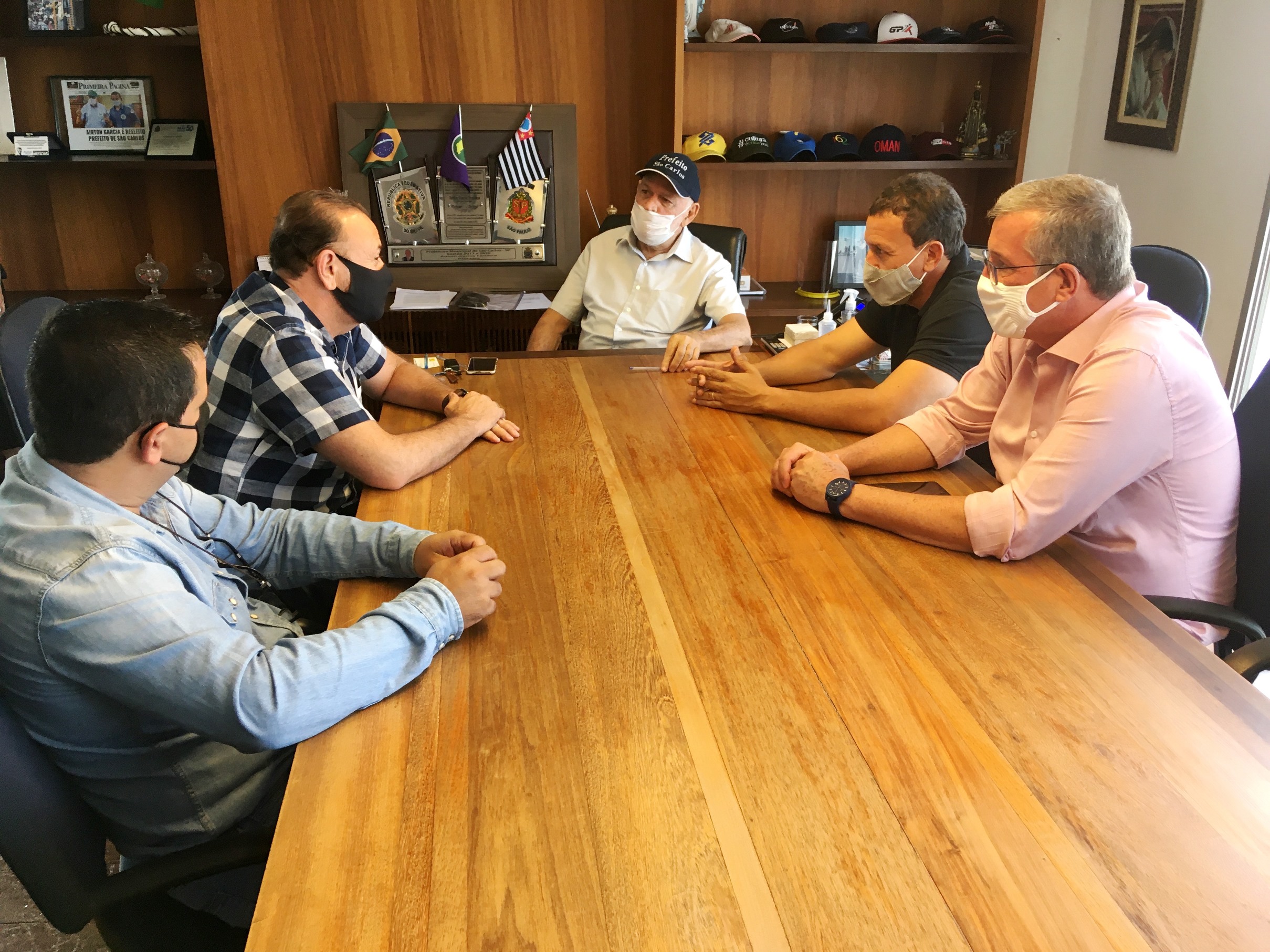 Também estiveram na reunião o vice-prefeito de São Carlos, Edson Ferraz (MDB); o presidente da Câmara Municipal de São Carlos, Roselei Françoso (MDB); o secretário de Trabalho, Emprego e Renda, Nino Mengatti; e o secretário de Comunicação e coordenador do Comitê Emergencial de Combate ao Coronavírus de São Carlos; Matheus de Aquino.