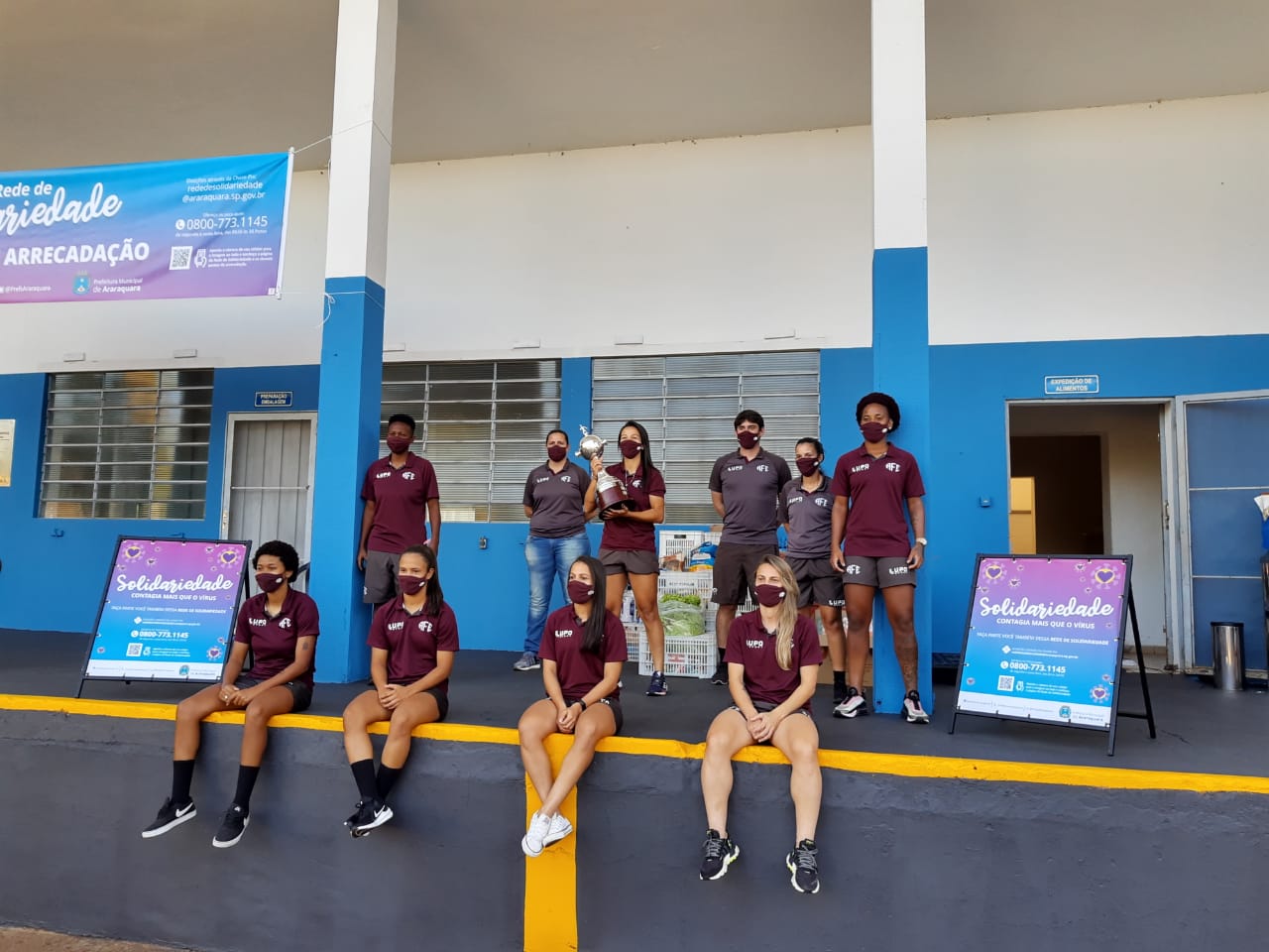Foram três horas de campanha, no sistema drive-thru, realizada no Banco de Alimentos, na Coordenadoria de Segurança Alimentar, e todos que passaram para fazer suas doações receberam, como forma de agradecimento, uma foto do título da Copa Libertadores da América de Futebol Feminino de 2021, autografada pelas bicampeãs.