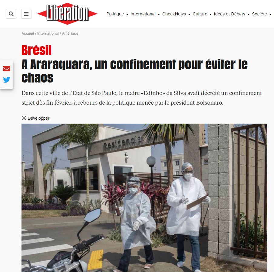 “Durante dez dias, Araraquara foi o laboratório de um experimento tabu no Brasil por causa da feroz oposição de Jair Bolsonaro a qualquer restrição à liberdade de movimento: a palavra lockdown (“confinamento”) usada aqui em inglês, para enfatizar seu lado extremo”, afirmou o jornal francês.