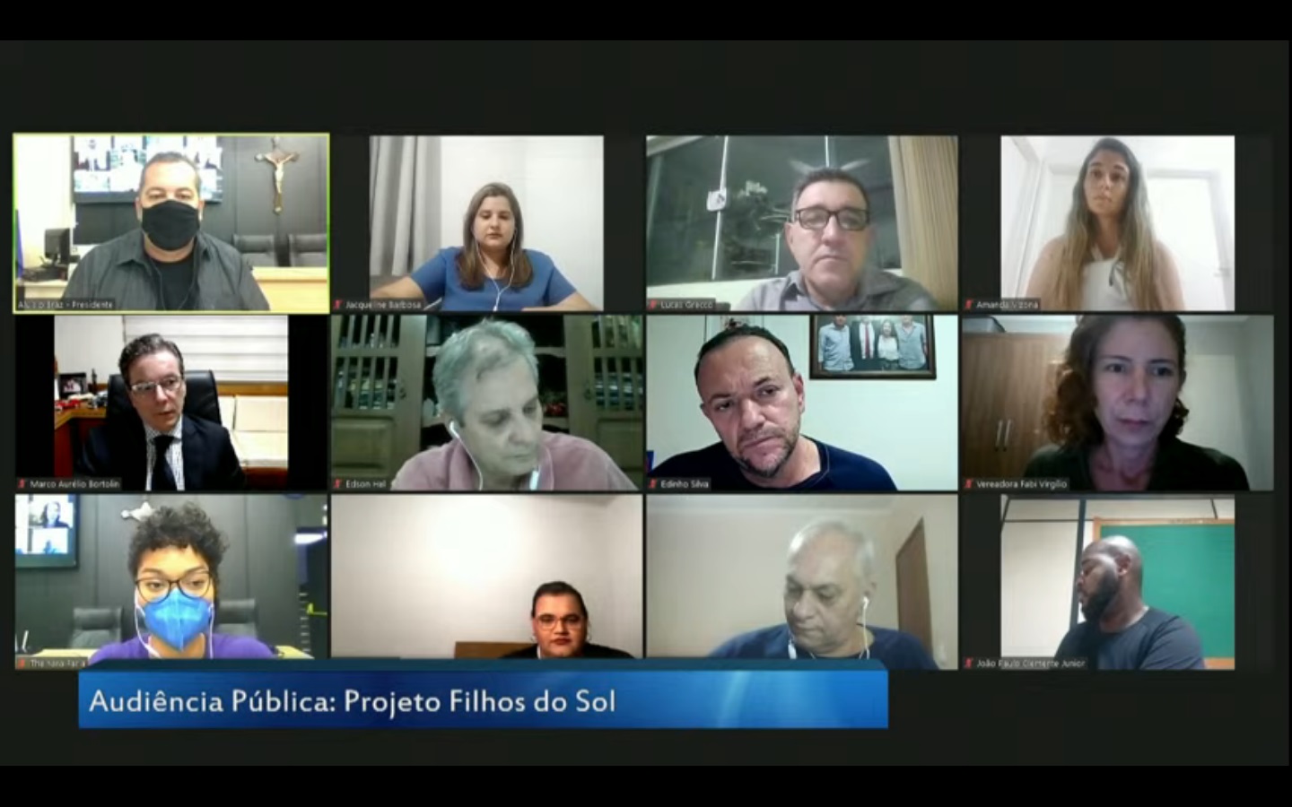 A audiência foi feita na noite de segunda-feira (19), teve transmissão nas redes sociais da Câmara e foi realizada de forma online, em razão da pandemia da Covid-19. A mediação foi do presidente do Legislativo, Aluísio Boi (MDB), e da vice-presidente, Thainara Faria (PT).
