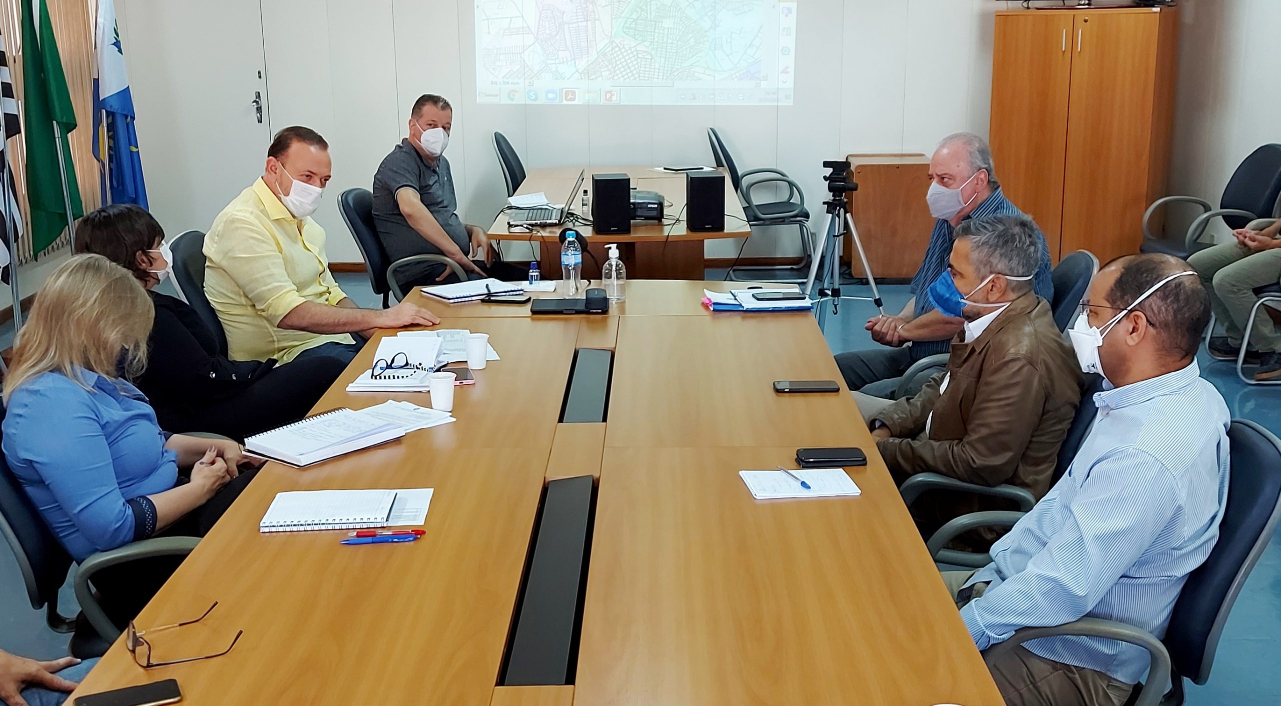 Edinho, secretários municipais e integrantes do Comitê de Contingência do Coronavírus receberam Wildo Navegantes de Araújo, consultor nacional em epidemiologia da unidade de emergência de saúde pública da OPAS Brasil, e Octávio Fernandes, consultor nacional da OPAS na área de laboratórios.
