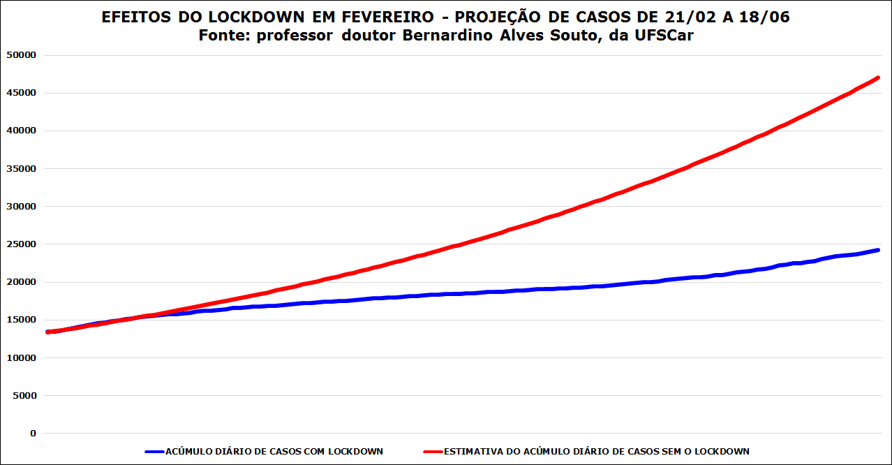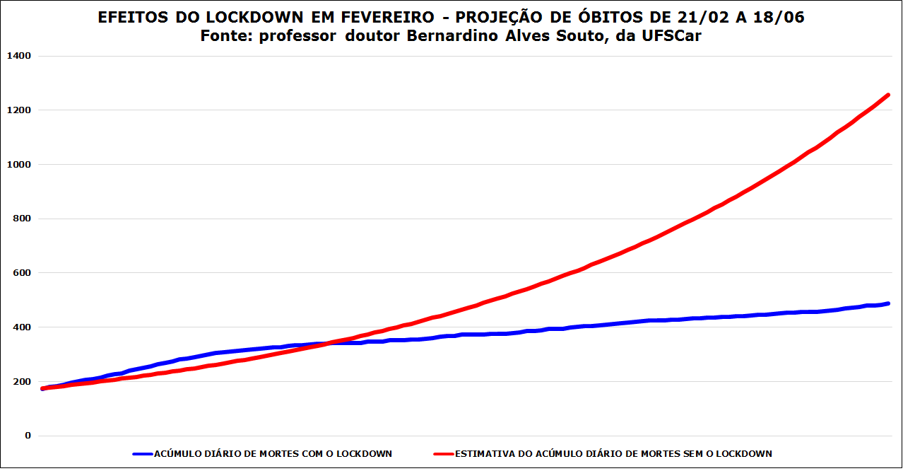 O lockdown adotado pela Prefeitura de Araraquara entre 21 de fevereiro e 2 de março contribuiu para evitar até 259 óbitos por Covid-19 em 60 dias, indica projeção do médico epidemiologista e professor doutor Bernardino Alves Souto, do Departamento de Medicina e do Programa de Pós-Graduação em Gestão da Clínica da UFSCar (Universidade Federal de São Carlos).