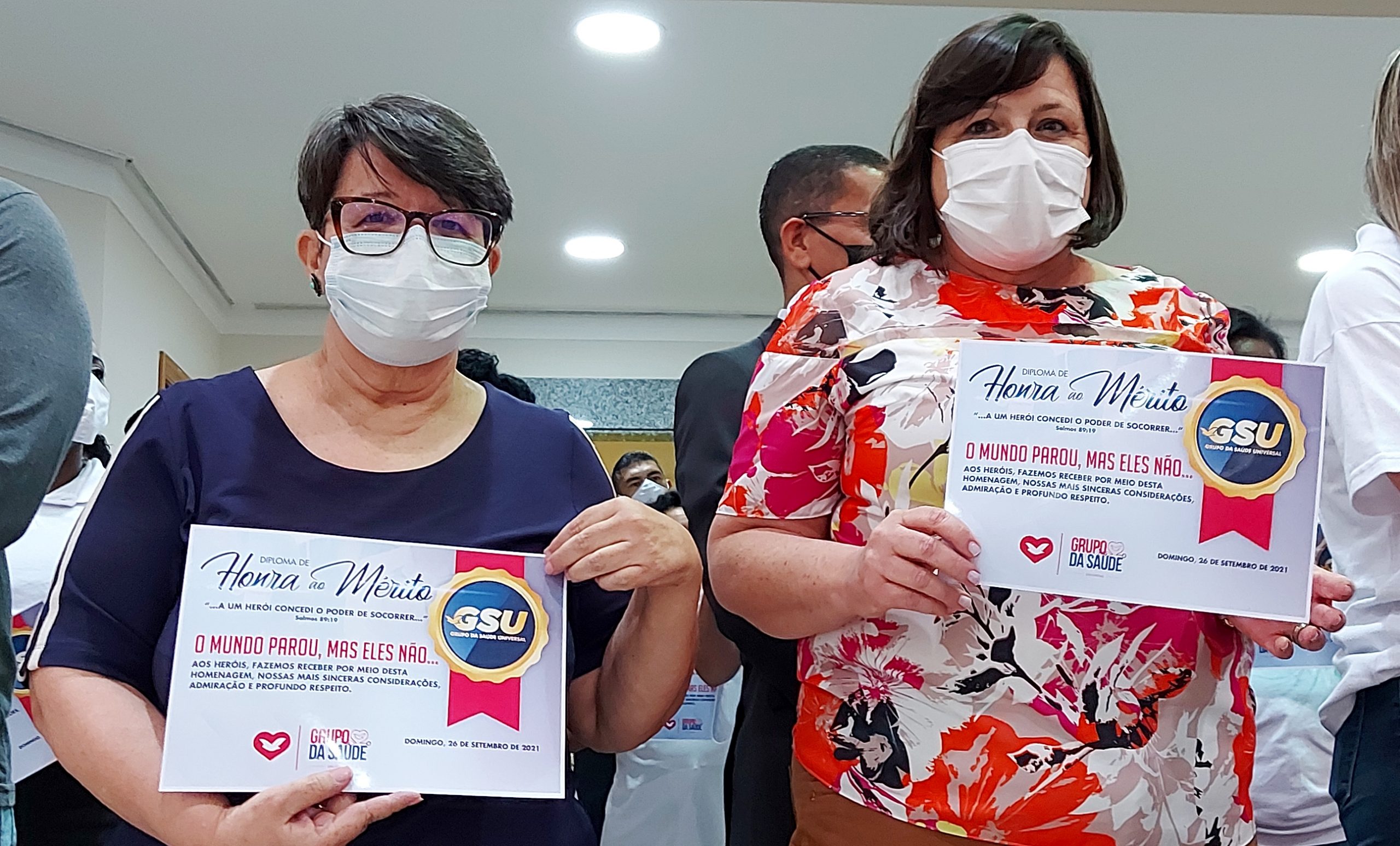 Todos os profissionais de saúde presentes foram homenageados com um vídeo exibido durante o culto e receberam diplomas de Honra ao Mérito pela atuação durante a pandemia da Covid-19.