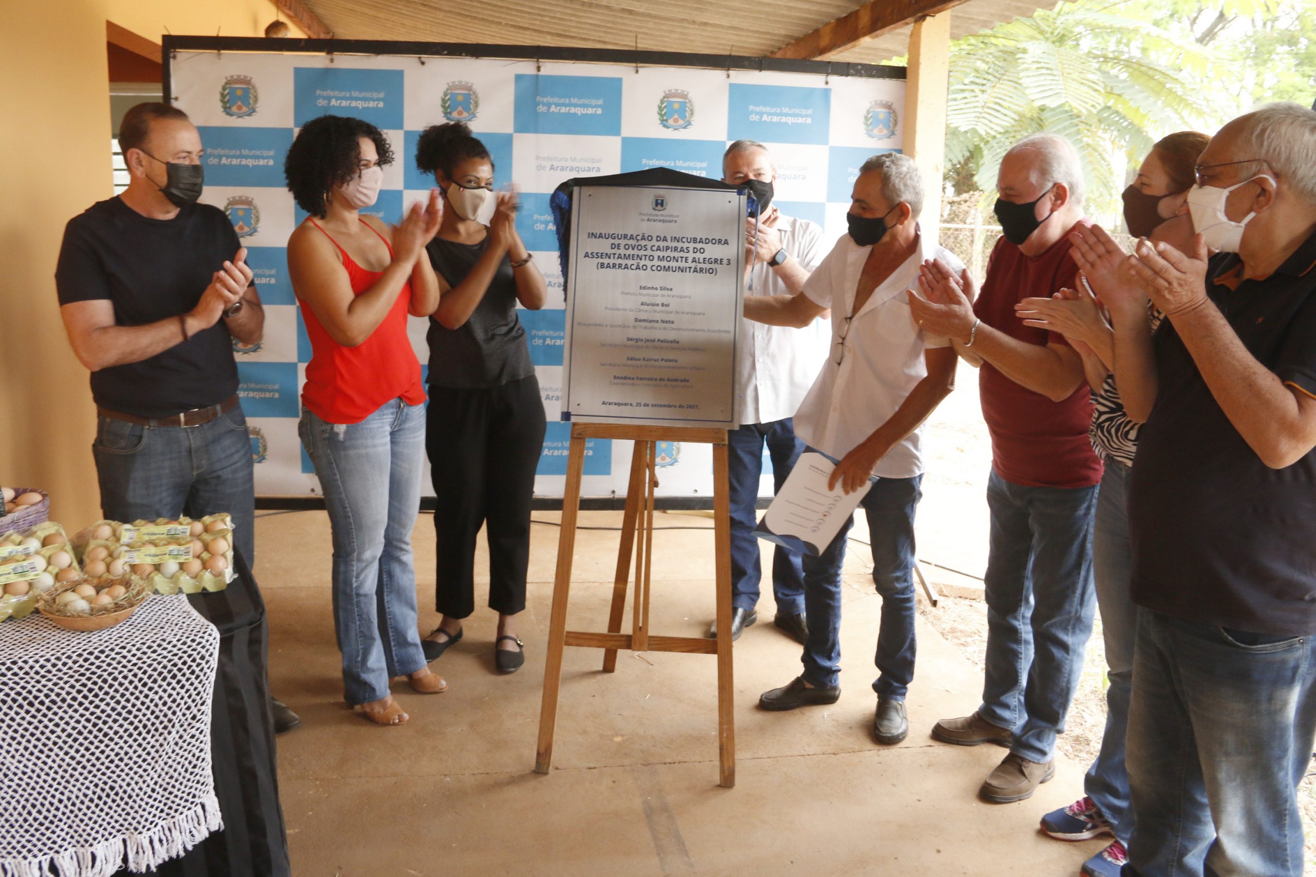 A Prefeitura inaugurou, em solenidade na manhã de sábado (25), a Incubadora de Ovos Caipira do setor 3 do Assentamento Monte Alegre, uma parceria com a Unesp (Universidade Estadual Paulista), a Uniara (Universidade de Araraquara) e a Coopersol (Cooperativa dos Agricultores Familiares de Araraquara e Região).
