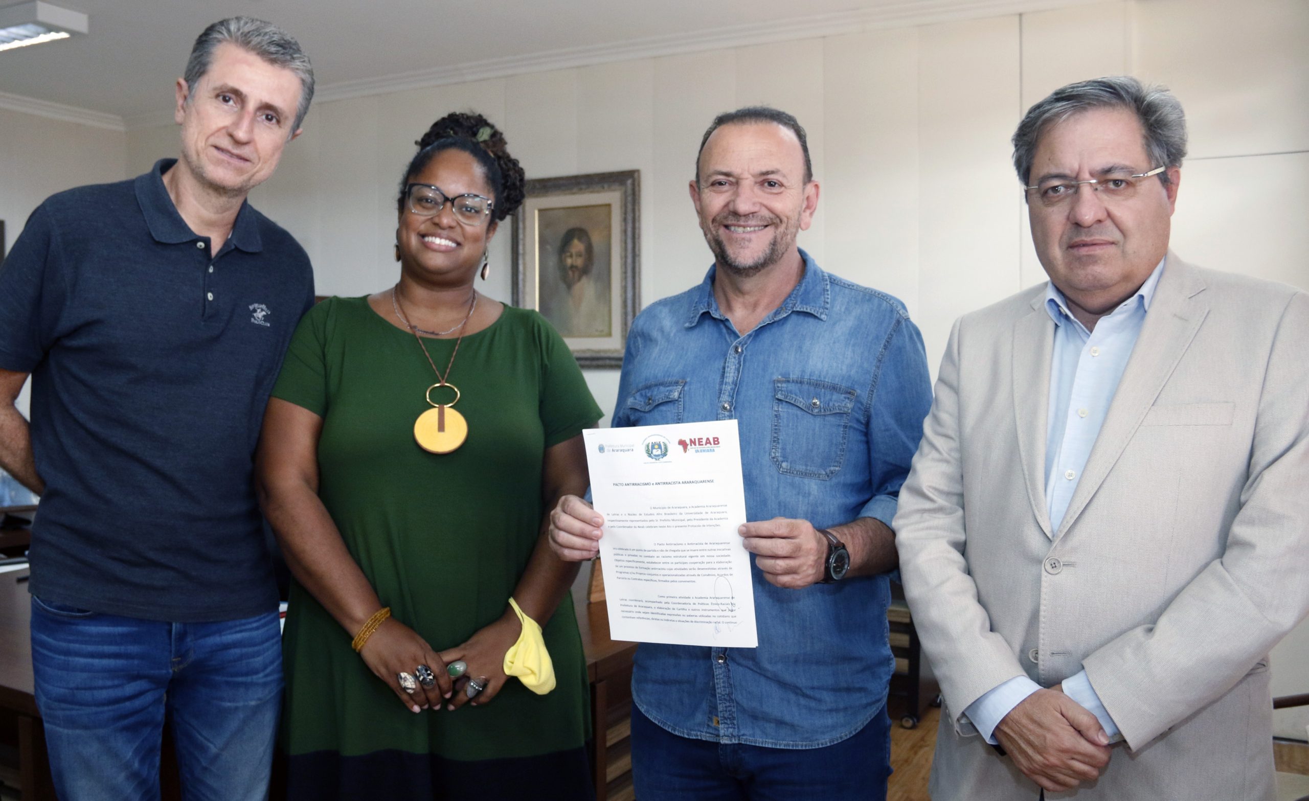A Prefeitura, a Academia Araraquarense de Letras e o NEAB (Núcleo de Estudos Afro Brasileiro) da Uniara (Universidade de Araraquara) assinaram um protocolo de intenções para criação de um Pacto Antirracismo e Antirracista Araraquarense.