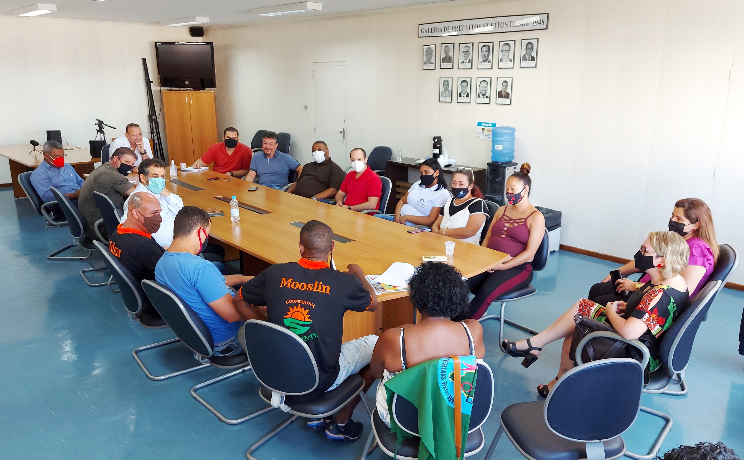 Participaram da reunião a secretária de Assistência e Desenvolvimento Social, Jacqueline Barbosa; a coordenadora do Trabalho e de Economia Criativa e Solidária, Camila Capacle; além de representantes das cooperativas Acácia, Coomappa, Morada Express, Panelas Unidas, Vitória Multisserviços e Sol Nascente.
