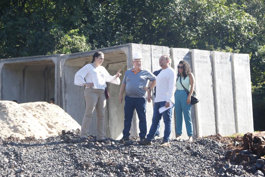 A primeira vistoria foi na obra do Córrego do Serralhal, na região do Jardim Aclimação. No local, está sendo feito o restabelecimento da travessia do córrego, que dá acesso ao bairro Veredas do Campo, na região do Serra Azul, zona norte da cidade. O investimento é de cerca de R$ 439.2 mil e foi liberado pelo Governo Federal.