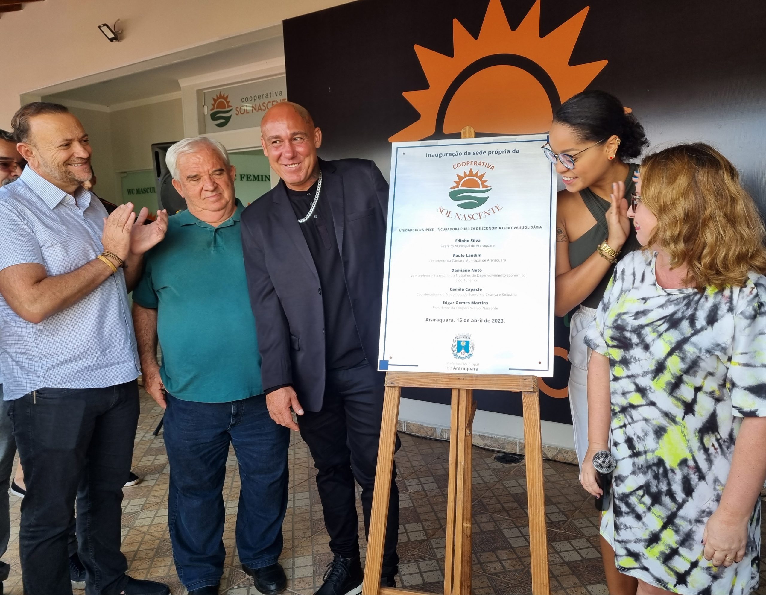 Um sábado (15) de festa e muita emoção para os cooperados e familiares marcou a entrega da nova sede da Sol Nascente, com a presença do prefeito Edinho, secretários, coordenadores municipais e demais autoridades. A Cooperativa Social de Trabalho em Recuperação de Materiais dos Egressos Prisionais de Araraquara Sol Nascente é um dos empreendimentos incubados pela Incubadora Pública de Economia Criativa e Solidária (IPECS), vinculada à Coordenadoria Executiva do Trabalho e de Economia Criativa e Solidária, da Secretaria Municipal do Trabalho e do Desenvolvimento Econômico.