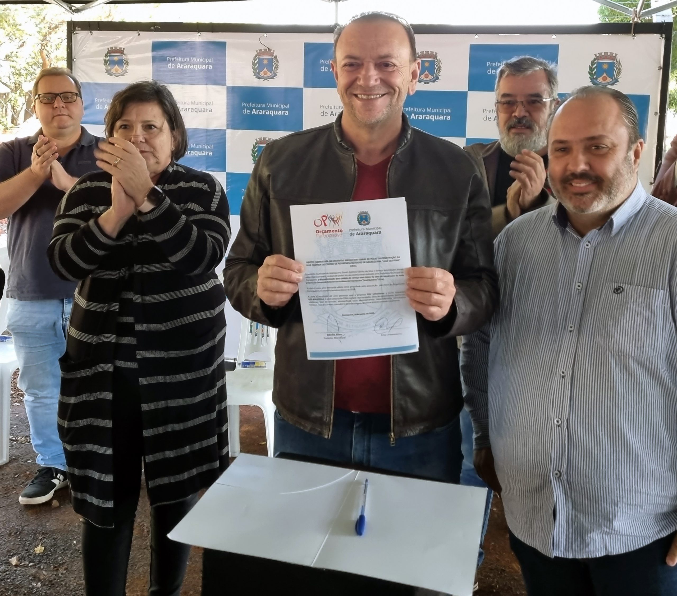 Em solenidade realizada na manhã desta quarta-feira (7), o prefeito Edinho assinou a Ordem de Serviço das obras de início da construção da sede própria do Centro de Referência do Idoso de Araraquara (Cria) “José Quitério”, que fica na Rua Comendador Hélio Morganti, esquina com Av. Dom Bosco, no Quitandinha.