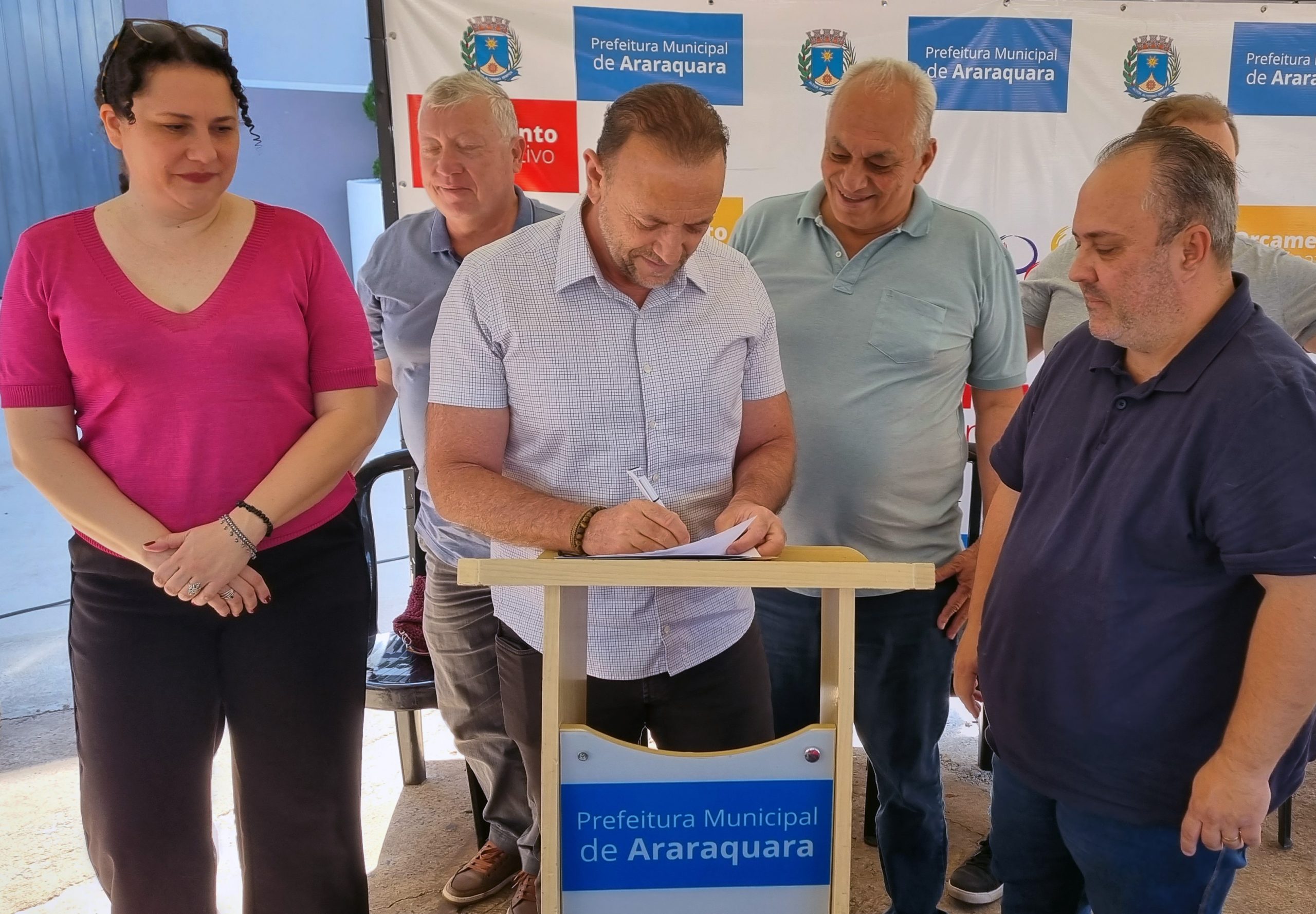 Em solenidade realizada neste sábado (29), o prefeito Edinho assinou a Ordem de Serviço para início das obras de reforma e revitalização da Praça da Igreja São Geraldo. A obra foi uma demanda eleita como prioridade pela população da Região 5 no Orçamento Participativo.