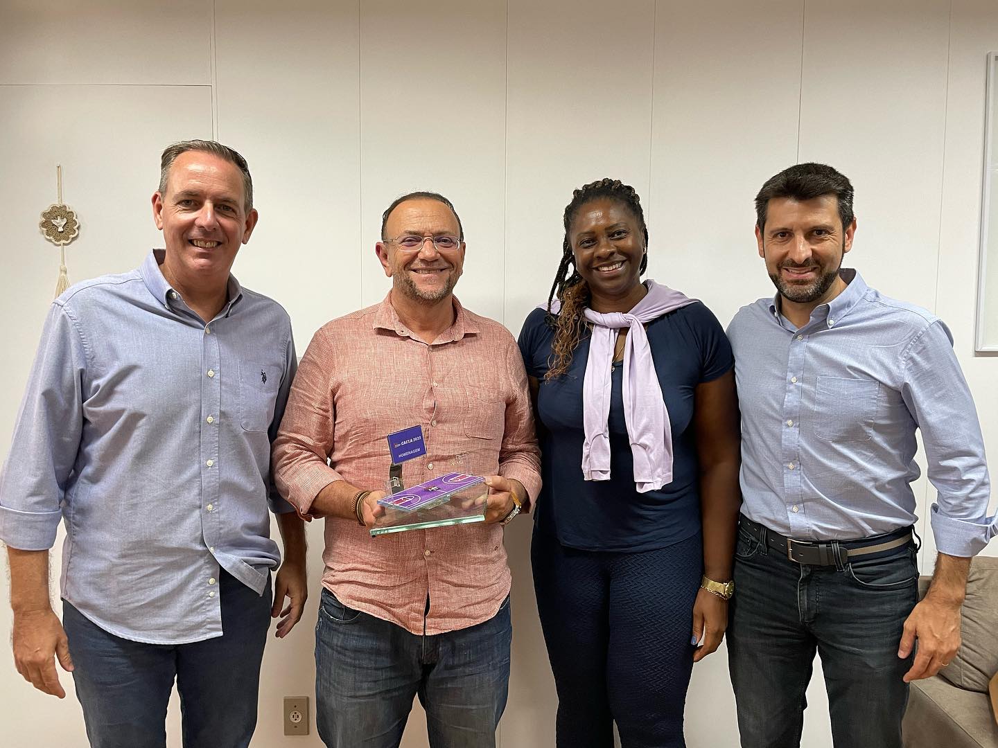 Na tarde desta quarta-feira (21), o prefeito Edinho recebeu em seu gabinete, na Prefeitura, o superintendente da Liga de Basquete Feminina (LBF), Fernando Maroni, que fez a visita acompanhado de Carlos Renato dos Santos, diretor técnico da LBF. A presidente da Fundesport, Roseli Gustavo, também participou do encontro, onde os representantes da liga entregaram ao prefeito um troféu de reconhecimento pelo apoio de Araraquara ao basquete feminino.