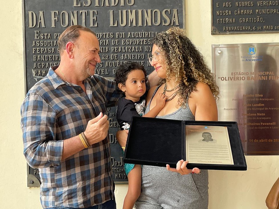 “A nova lei nos permite fazer essa homenagem ao maior jogador da história de Araraquara. Agradeço a família, a diretoria da Ferroviária, a Câmara Municipal e os integrantes do governo municipal que trabalharam por este momento. A Fonte Luminosa eternizou o nome do ex-governador Adhemar de Barros, mas, graças à nova legislação, vamos poder também homenagear nosso eterno Olivério Bazani Filho. Já temos o busto do Bazani aqui em frente à Arena, mas todas as homenagens são justas a ele, que é o maior símbolo esportivo da história da Ferroviária e, portanto, da história de Araraquara”, declarou o prefeito, em suas redes sociais.
