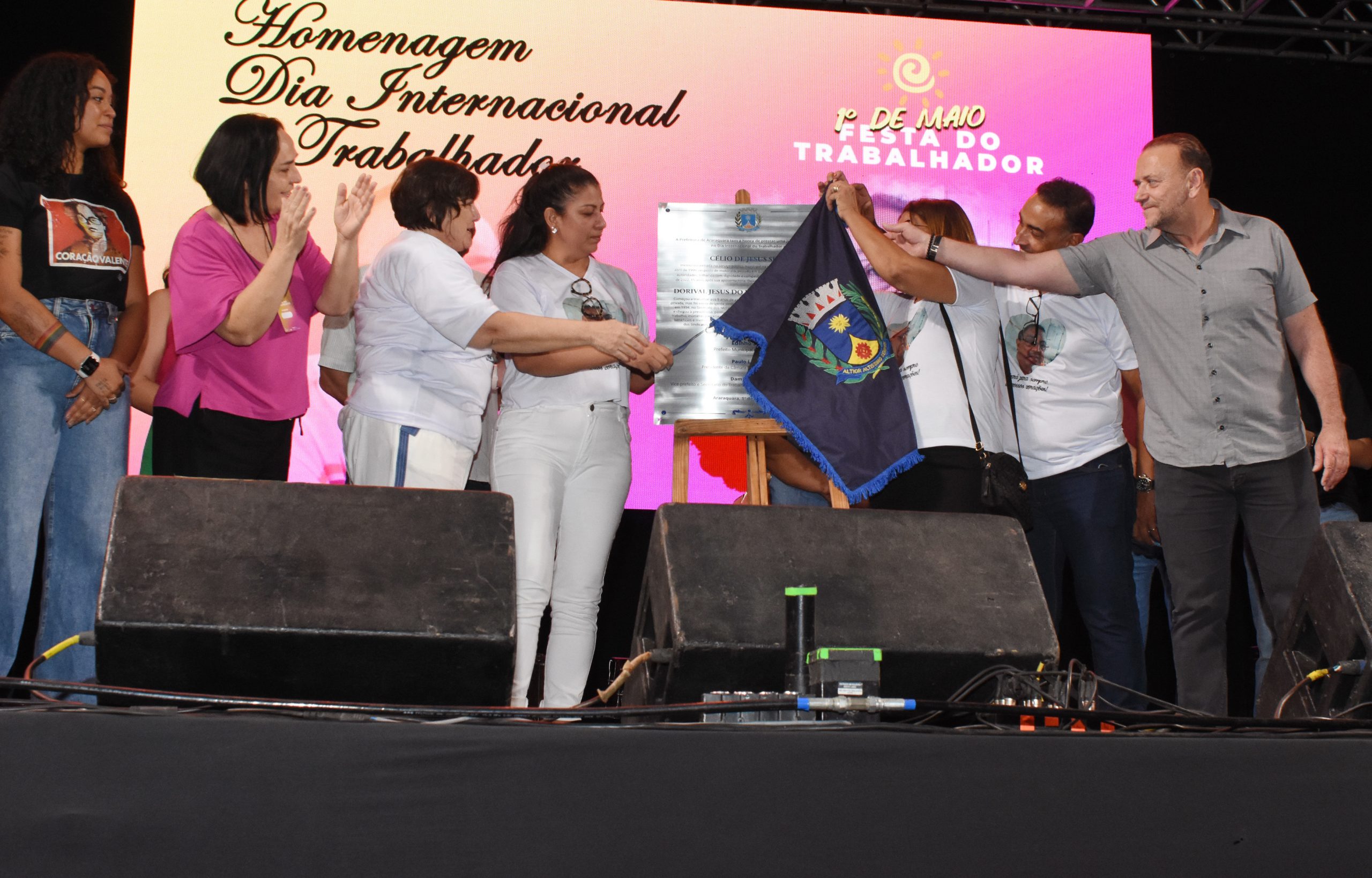Outro destaque das festas do 1º de maio foi o ato em homenagem, in memorian, aos trabalhadores Célio de Jesus Silva e Dorival Jesus do Nascimento Junior, com a presença de familiares e amigos dos homenageados, do prefeito Edinho, do vice-prefeito Damiano Neto e da secretária municipal de Saúde, Eliana Honain, representando todos os gestores municipais; das deputadas estaduais Márcia Lia e Thainara Faria, dos vereadores Paulo Landim, presidente da Câmara Municipal, Emanuel Sponton, Alcindo Sabino, Fabi Virgílio, Filipa Brunelli e Guilherme Bianco, e Edinaldo Ferreira, representando a CUT e todas as centrais sindicais e sindicatos presentes.