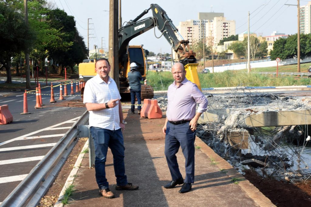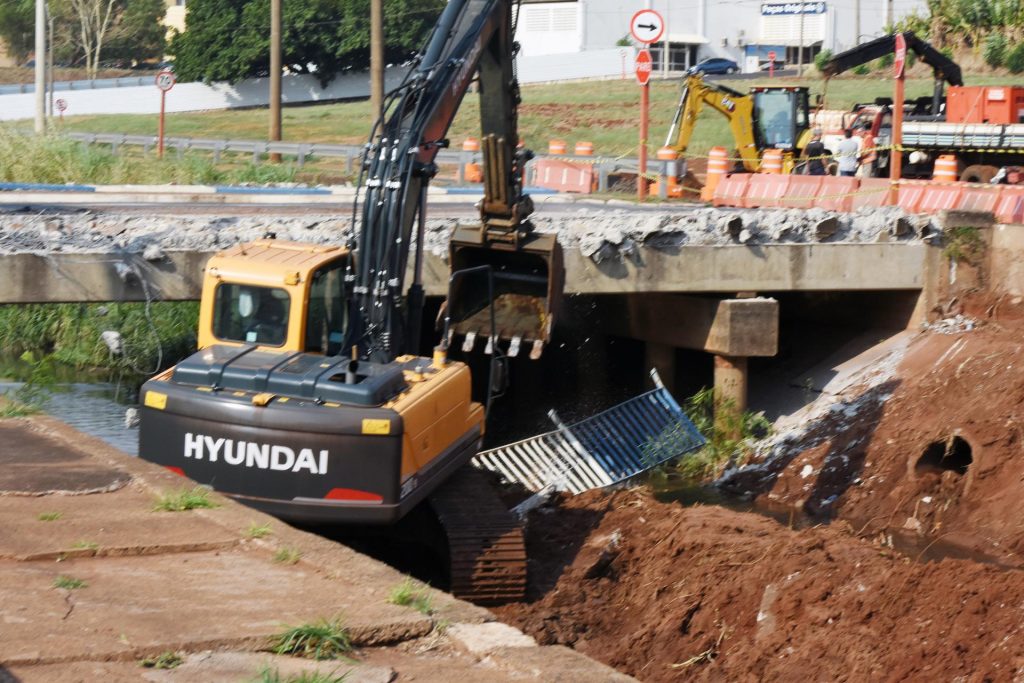 O prefeito Edinho esteve acompanhando o trabalho de demolição da ponte sobre o Ribeirão do Ouro, na tarde desta quinta-feira (5), que integra a fase dois das obras de macrodrenagem, em andamento na Avenida Maria Antônia Camargo de Oliveira (Via Expressa), próximo ao Terminal Rodoviário. O prefeito estava acompanhado de Olavo Noleto Alves, Secretário-Executivo de Relações Institucionais, do Ministério de Relações Institucionais, que esteve na cidade.