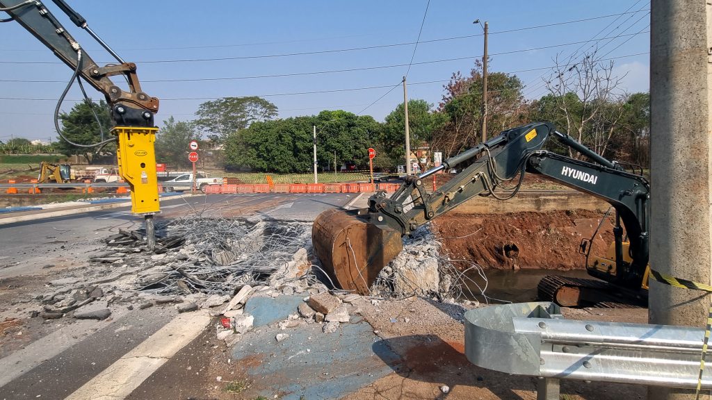 Começa demolição da ponte sobre o Ribeirão do Ouro, na Via Expressa