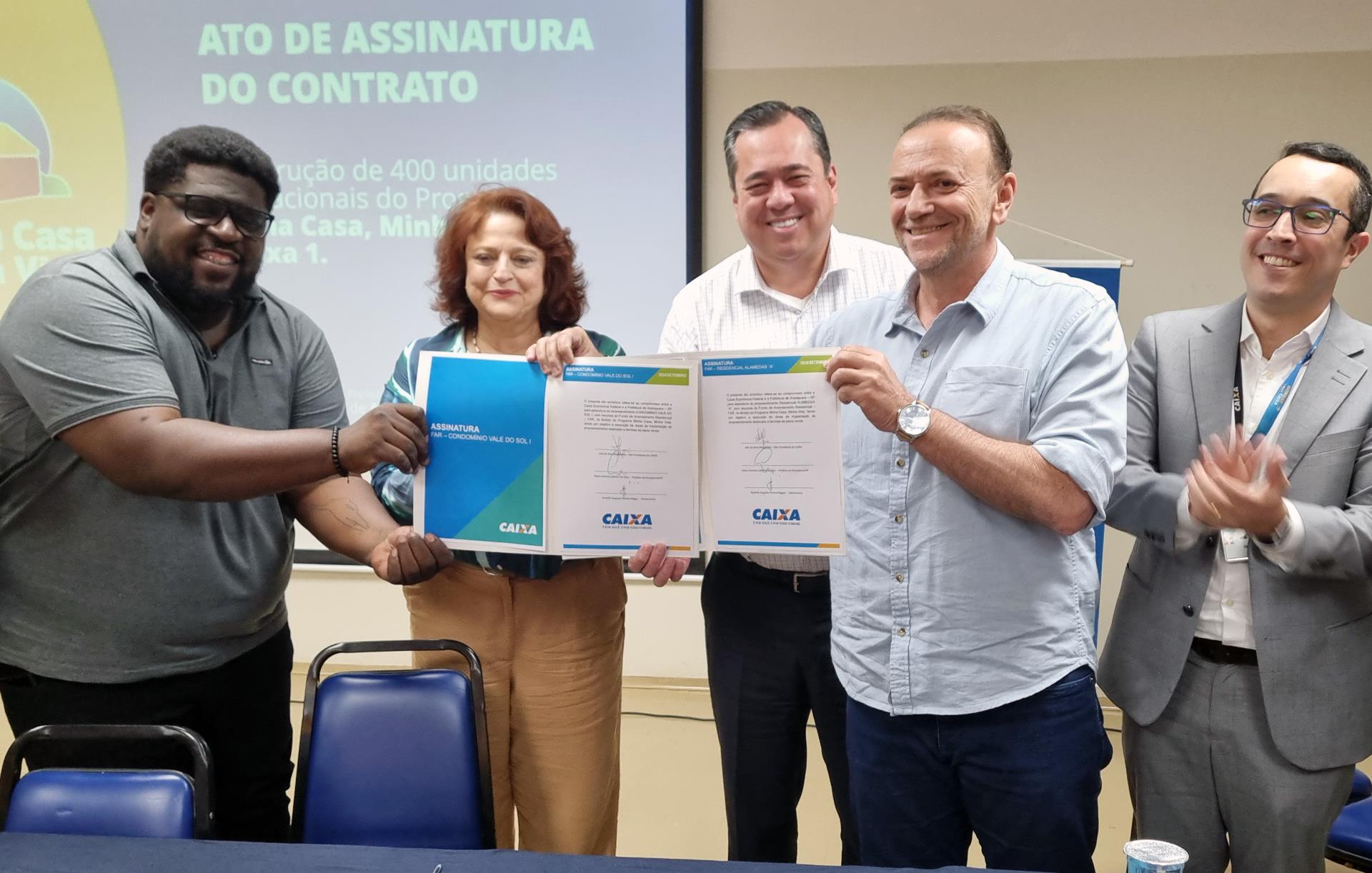 Com a presença da vice-presidente da Caixa Econômica Federal, Inês Magalhães, a Prefeitura de Araraquara, Caixa e BRNPAR Empreendimentos Imobiliários Ltda. assinaram, na tarde desta segunda-feira (23), no Distrito Araraquara (antigo Cear), o contrato para a construção de 400 unidades habitacionais em Araraquara do Programa Minha Casa, Minha Vida (MCMV), do Ministério das Cidades.