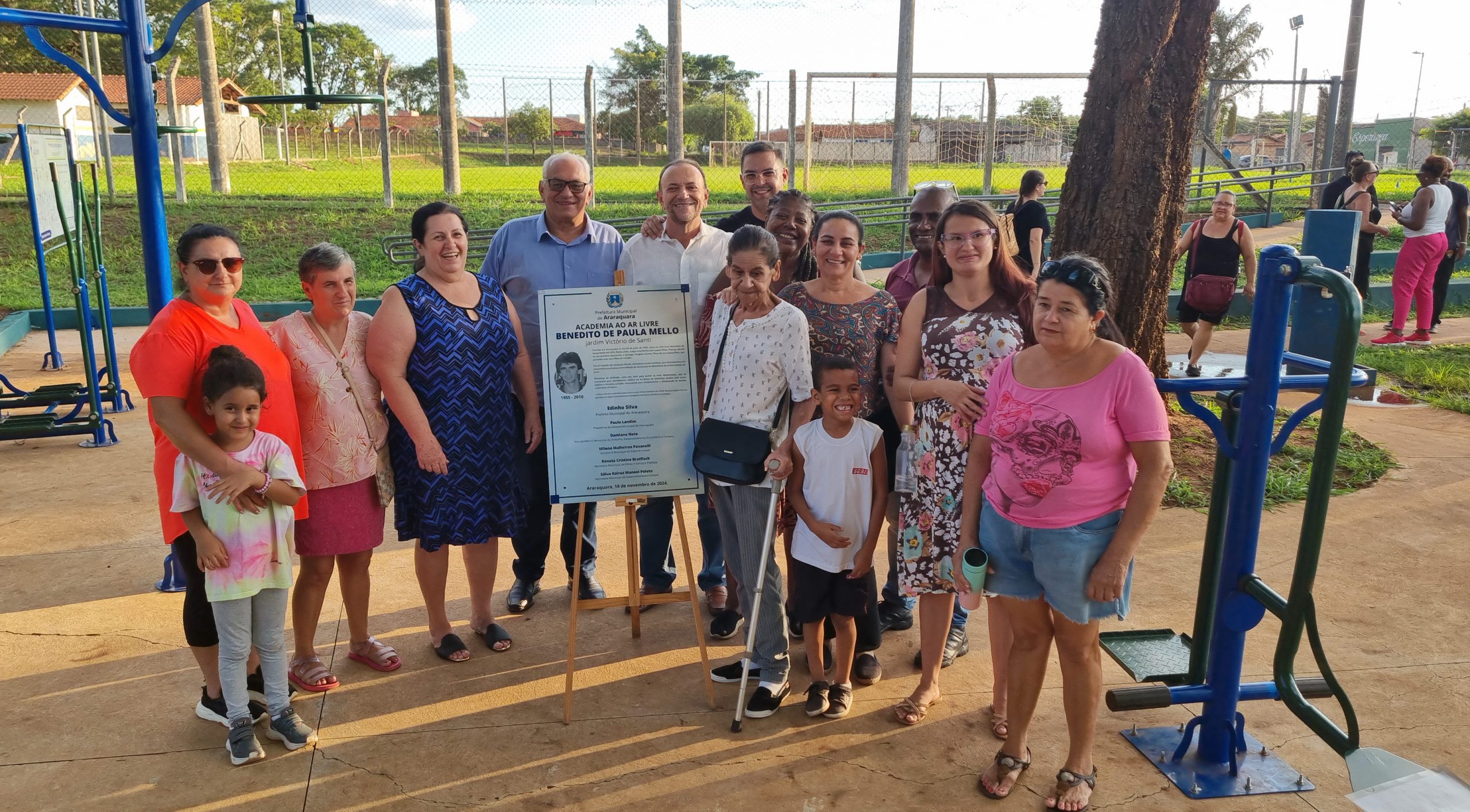 “Já são 12 academias entregues, e vamos entregar mais 3. Estamos investindo em lazer e qualidade de vida para nossa população. Com uma indicação do vereador Paulo Landim, essa é muito especial, porque fazemos homenagem para o seu Benedito. Ele foi uma figura carismática, querida por todos, e com um importante papel para a comunidade do Victório de Santi. Essa academia significa a materialidade de seu legado”, declarou o prefeito Edinho, no ato de entrega, ao lado da família do homenageado, entre eles a viúva Rosa Benedicta de Souza Mello.