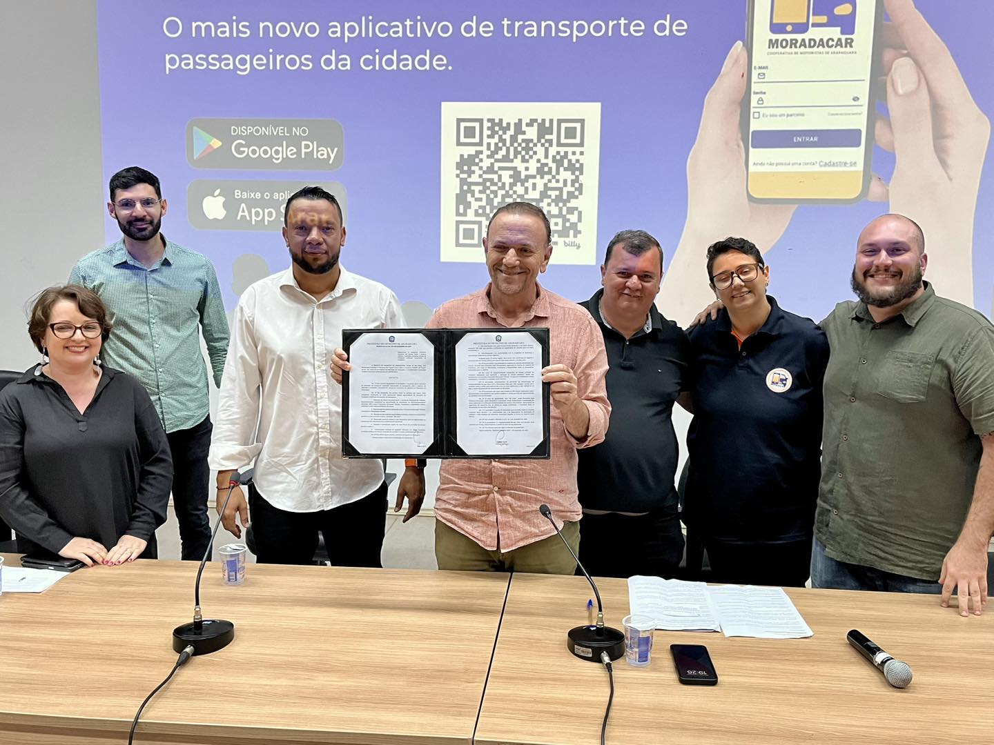 A cerimônia de lançamento do aplicativo da Cooperativa de Motoristas de Araraquara MoradaCar, que integra a Incubadora Pública de Economia Criativa e Solidária (IPECS), programa desenvolvido pela Coordenadoria de Trabalho e Economia Criativa e Solidária (CETECS) da Secretaria Municipal de Trabalho, Desenvolvimento Econômico e Turismo, foi realizada na noite desta quarta-feira (4), no campus da Unesp de Araraquara.